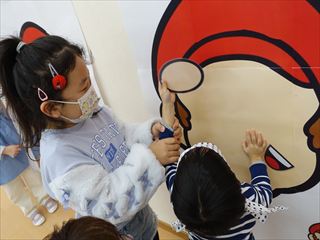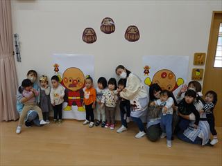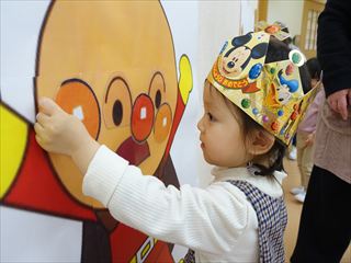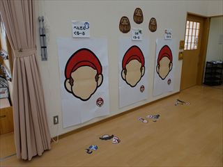 ひよこ・りす1・りす2組さんは、アンパンマンの福笑いです![]()